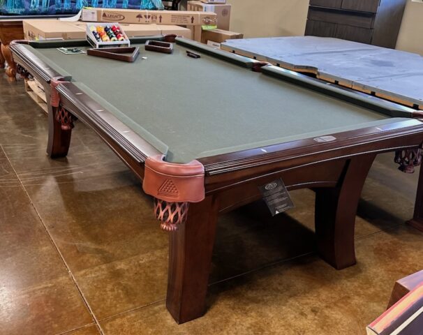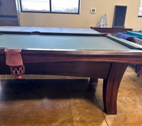 Beautiful 8ft Legacy Billiards Ella pool table finished in a rich mahogany stain, featuring elegant detailing and solid hardwood construction. Furniture-quality design with smooth, accurate play—this table is a true centerpiece for any game room and is ready for delivery and installation in the Memphis area.