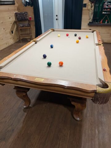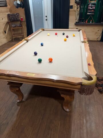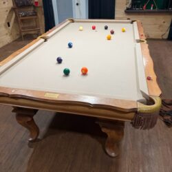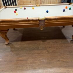 Beautiful 8ft Gandy pool table with a rich honey oak finish and elegant detailing, offering a sophisticated, furniture-style look with solid construction and professional-level playability. Built by a premium brand trusted by serious players. Save big compared to buying new without compromising on quality!