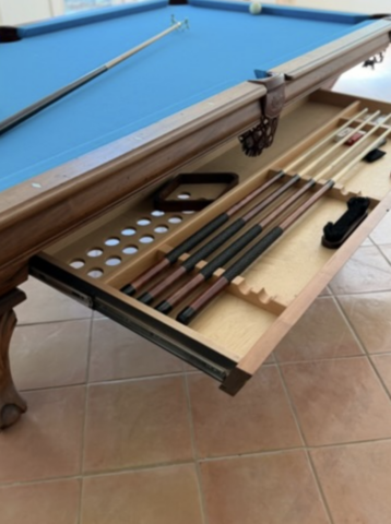Golden West tables are built for long-term durability and consistent performance, and this specific table is in excellent condition with a 3-piece slate playing surface for accurate, professional-level gameplay. It also features a convenient built-in storage drawer for cues and accessories. We ensure a smooth, hassle-free delivery and professional setup by experienced installers.