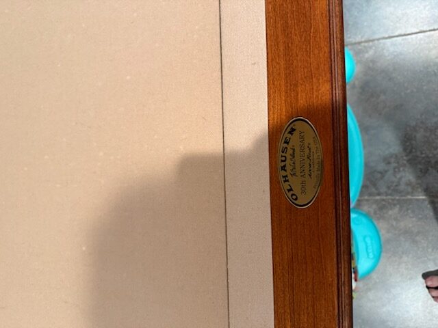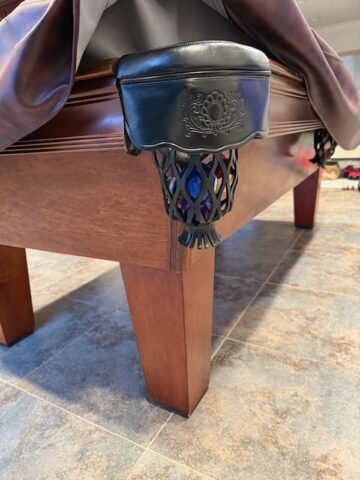 Beautiful 8ft Olhausen pool table with a rich brown finish and elegant tapered legs, offering a clean, sophisticated furniture-style design with fine lines and premium craftsmanship. Olhausen is one of the most respected names in billiards, known for smooth playability and superior American-made construction. Save thousands compared to buying new without compromising on quality!